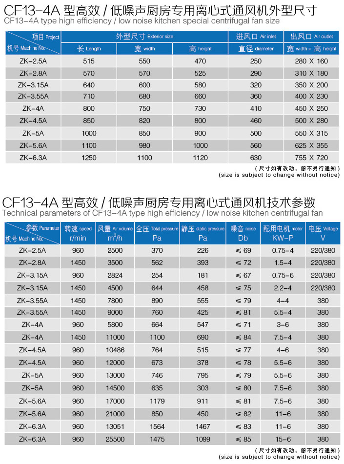 高效/低噪聲廚房專用離心式通風(fēng)機(jī)
