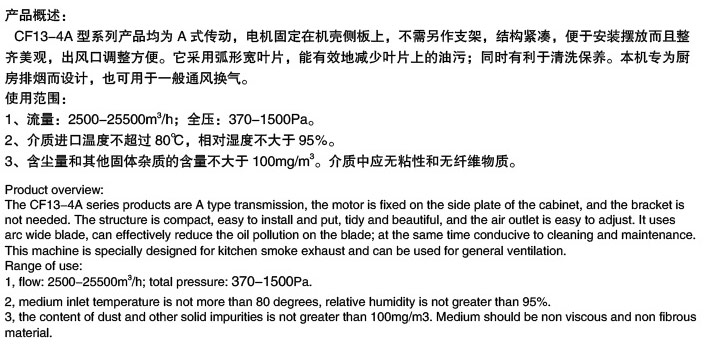 CF1--4A型高效/低噪聲廚房專用離心式通風(fēng)機(jī)